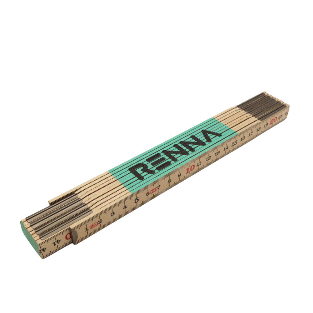 Material: madeira com dobradiça em aço.17mm de largura e 2m de comprimento - 10 dobras.Escala métrica.Revestido com laca de proteção à base de água.